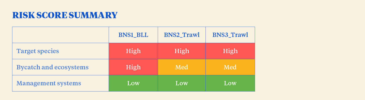 - Bycatch and ecosystems (BNS2_Trawl & BNS3_Trawl) - Stable: No major changes are expected to bycatch and ecosystem risk scoring.